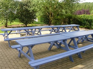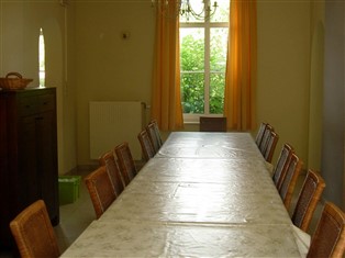 Ferienwohnung (Ländlich) , 360 m² Wohnfläche, 13 Schlafzimmer, 9 Badezimmer, für 28 Personen. Parterre: (Wohnzimmer (TV, Kaminofen, DVD-Spieler, Stereoanlage), Esszimmer (4x Esstisch (36 Personen)), Küche (Kochherd (elektrisch), Backofen, Mikrowelle, 2x Spülmaschine, Kühlschrank, Kühl-/Gefrierkombination), Toilette)