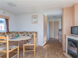 "Kempenland", 4-Zimmer-Mobilheim. Zweckmässig eingerichtet: Wohn-/Esszimmer mit Esstisch und TV. Ausgang zur Terrasse. 1 Doppelzimmer mit 1 Doppelbett. 2 Doppelzimmer, jedes Zimmer mit 2 Betten. Offene Küche (4 Flammen, Mikrowelle, elektrische Kaffeemaschine). Dusche/WC. Heizung. Terrasse. Terrassenmöbel. Parkplatz beim Haus.