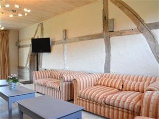 Ferienwohnung (Ländlich) , 430 m² Wohnfläche, 6 Schlafzimmer, 6 Badezimmer, für 14 Personen. Parterre: (Eingangshalle, Wohnzimmer (TV, Bar, Dart, Billard), Aufenthaltsraum (TV), Wohnküche (Kochplatte (6 Kochplatten, Ceranfeld), Wasserkocher, Toaster, Kaffeemaschine (Filter), Kaffeemaschine (cups), Backofen, Mikrowelle, Spülmaschine, Kühl-/Gefrierkombination), Schlafzimmer mit Badezimmer (Einzelbett, Einzelbett, Dusche, Waschbecken, Toilette), Schlafzimmer mit Badezimmer (Doppelbett, Dusche, Waschbecken, Toilette), Toilette, Ruheraum (Massagedusche, Sauna))