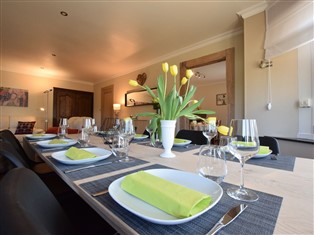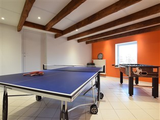 Ferienwohnung / Hütte (Ländlich) , 500 m² Wohnfläche, 3 Schlafzimmer, 2 Badezimmer, für 6 Personen. Parterre: (Eingangshalle (Toilette), offene Küche (Wasserkocher, Toaster, Kochherd (4 Kochplatten, Gas, elektrisch), Kaffeemaschine (Filter, pads), Backofen, Mikrowelle, Spülmaschine, Kühlschrank), Wohnküche (Esstisch (4 Personen), Hochstuhl), Wohn/Esszimmer (TV (digital), Kaminofen, Radio), Schlafzimmer mit Badezimmer (Doppelbett (180 x 200 cm), Badewanne, Dusche, 2x Waschbecken, Toilette), Spielzimmer (Kühl-/Gefrierkombination, Tischtennisplatte, Tischfußball, Dart), Abstellraum (Trockner))