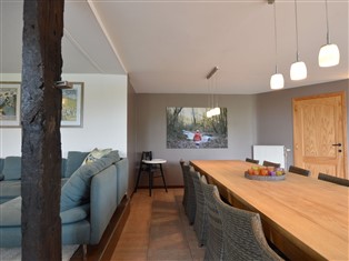 Guter Empfang, gemütliche Sitzecke, langen Tisch, Hirsche im Hintergrund ... Ideal Ardennen Gefühl. Quiet buurt.We hatte auch super Wetter für Oktober 31 und dachte, dass es hier im Sommer, wenn der Pool geöffnet Licht fantastisch sein sollte. Sehr empfehlenswert!