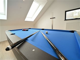 Ferienwohnung, 540 m² Wohnfläche, 7 Schlafzimmer, 7 Badezimmer, für 17 Personen. Parterre: (Wohnzimmer (TV (Flatscreen, digital), Esstisch, Sitzecke, DVD-Spieler), Aufenthaltsraum (Sitzecke), offene Küche (Esstisch, Kochherd (Induktion), Kaffeemaschine, Backofen, Mikrowelle, Spülmaschine, Kühlschrank, Tiefkühlschrank), Schlafzimmer mit Badezimmer (Doppelbett, Dusche), Schlafzimmer mit Badezimmer (Doppelbett, Dusche), Schlafzimmer mit Badezimmer (Doppelbett, Badewanne), Schlafzimmer mit Badezimmer (Doppelbett, Dusche), Schlafzimmer mit Badezimmer (Doppelbett, Dusche), Schlafzimmer mit Badezimmer (Doppelbett, Dusche), Schlafzimmer mit Badezimmer (Doppelbett, Dusche), Kinderzimmer (3x Einzelbett, 2x Einzelunterschiebebett), Kinderzimmer (Einzelbett, Etagenbett), Toilette, Freizeitraum (Billard, Tischfußball))