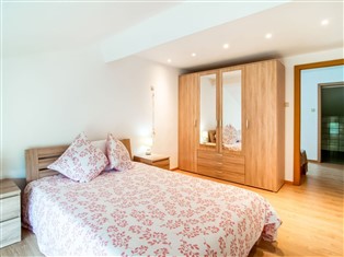 In der 1. Etage: (Schlafzimmer (Doppelbett (Doppelbettdecke, Doppelspannbetttuch, 160 x 200 cm), Bügelbrett, Bügeleisen), Schlafzimmer (Doppelbett (Doppelbettdecke, Doppelspannbetttuch, 160 x 200 cm)), Toilette (Waschbecken), Empore (Schlafcouch 1 Pers., Treppenschutzgitter), Klimaanlage, Fliegenfenster)