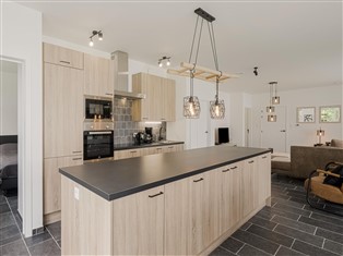 Ferienhaus, 240 m² Wohnfläche, 4 Schlafzimmer, 3 Badezimmer, für 8 Personen. Parterre: (Eingangshalle, Küche (Kochplatte, Kaffeemaschine, Backofen, Mikrowelle, Kühlschrank, Kühl-/Gefrierkombination), Wohn/Esszimmer (TV, Esstisch, Sitzecke), Schlafzimmer mit Badezimmer (Doppelbett, Dusche, Waschbecken), Toilette, Freizeitraum (Tischfußball, Billard), Abstellraum)