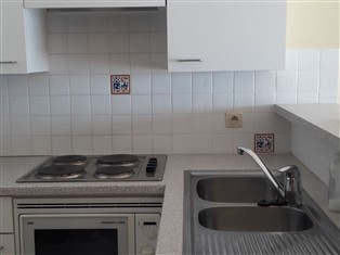 Ferienwohnung (Meerblick) , 50 m² Wohnfläche, 1 Schlafzimmer, 1 Badezimmer, für 4 Personen. In der 4. Etage: (Küche (Wasserkocher, Toaster, Kochherd, Backofen, Kühlschrank), Wohn/Esszimmer (Doppelschlafcouch, TV, Esstisch, Sitzecke), Schlafzimmer (Etagenbett), Badezimmer (Dusche, Waschbecken, Toilette))