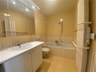 Ferienwohnung (In einem Wohngebiet oder im Zentrum (Dorf), In einer Residenz) , 75 m² Wohnfläche, 2 Schlafzimmer, 2 Badezimmer, für 5 Personen. In der 1. Etage: (Küche (Kochherd (elektrisch), Kaffeemaschine, Kombi-Mikrowelle, Spülmaschine, Kühl-/Gefrierkombination), Wohn/Esszimmer (TV (digital), Esstisch, Sitzecke), Schlafzimmer (Doppelbett (160 x 200 cm)), Schlafzimmer (Einzelbett, Etagenbett), Badezimmer (Badewanne mit Dusche, Waschbecken, Toilette), Badezimmer (Dusche, Waschbecken), Toilette (Toilette))