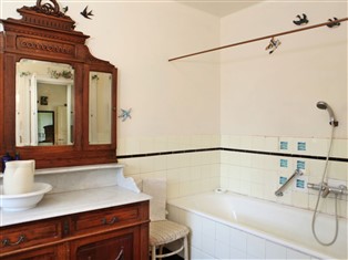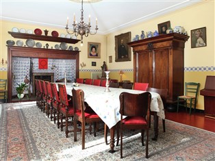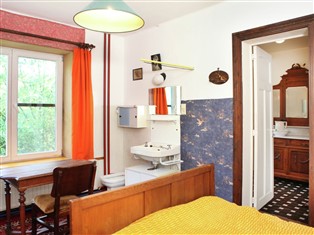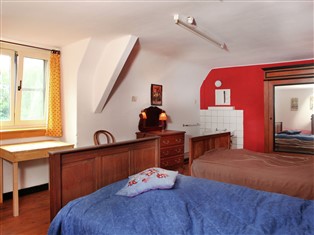 Doppelhaushälfte / Villa (Ländlich) , 400 m² Wohnfläche, 10 Schlafzimmer, 3 Badezimmer, für 12 Personen. Parterre: (Eingangshalle, Wohnzimmer (Kaminofen), Küche (Backofen, Mikrowelle, Spülmaschine), Wohnküche, Schlafzimmer (Einzelbett, Waschbecken, Toilette), Toilette, Toilette, Wirtschaftsraum (Waschmaschine))