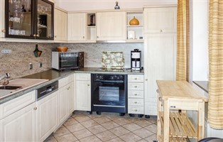Innenausstattung: Küche: warmes / kaltes Wasser, Elektroherd mit Backofen, Kühlschrank, Dunstabzug, Gefrierfach 10 l, Kaffeemaschine, Mikrowelle, Waschmaschine, Geschirrspüler, Staubsauger, 2 TV,, Radio und CD Player, Kamin, WC. Warmes und kaltes Wasser, WLAN
