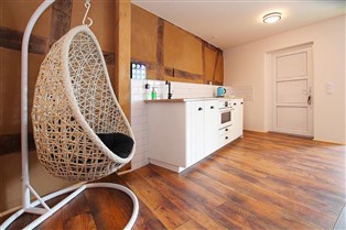Ferienhaus, 55 m² Wohnfläche, 1 Schlafzimmer, 1 Badezimmer, für 2 Personen. Parterre: (offene Küche (Esstisch, Kochplatte (2 Kochplatten, Ceranfeld), Wasserkocher, Toaster, Kaffeemaschine, Mikrowelle, Kühl-/Gefrierkombination), Wohn/Esszimmer (Doppelschlafcouch, TV (Satellit), Radio, CD-Spieler), Badezimmer (Dusche, Toilette, Föhn))
