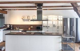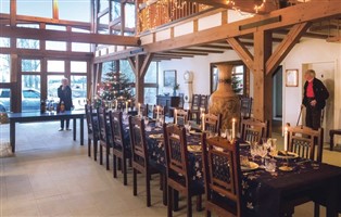 Der gemeinschaftliche Raum ist großzügig und hell gestaltet. Hier können Sie ebenfalls Businessmeetings, Teambuilding-Treffen oder Workshops durchführen. Dank der historischen und rustikalen Einrichtung im Landhausstil werden Sie sich hier sofort wohlfühlen. Hier leben Sie in einem ganz besonderen Landhaus, das aus seiner Historie heraus eine neue architektonische Gestalt und Funktion gefunden hat. Hier entsteht die wahre „Landlust“.