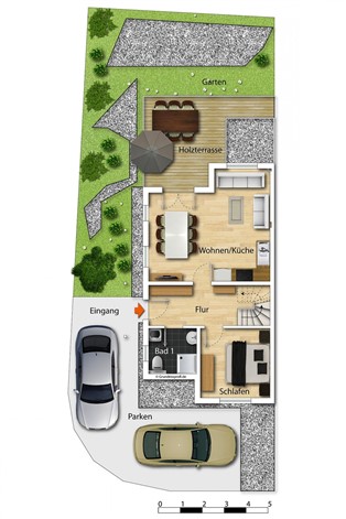 Art: Ferienhaus, Single home, Haustyp: Doppelhaushälfte, Lage: Auf einer Insel, In einem Wohngebiet oder im Zentrum (Dorf), barrierefrei