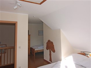 In der 1. Etage: (Schlafzimmer (Doppelbett), Schlafzimmer (Einzelbett, Einzelbett), Badezimmer (Dusche, Sauna (alleinige Nutzung), Waschbecken, Toilette), Flur)