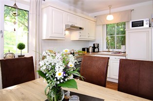 Kochnische (Esstisch, Wasserkocher, Toaster, Kochherd (4 Kochplatten, Ceranfeld), Dunstabzugshaube, Kaffeemaschine, Backofen, Spülmaschine, Kühl-/Gefrierkombination), Wohn/Esszimmer (TV (Kabel), Kaminofen, DVD-Spieler, Radio, CD-Spieler, Heizung (Fußbodenheizung)), Schlafzimmer (Einzelbett, Einzelunterschiebebett), Grill, Sauna, Waschmaschine, Terrasse, Gartenmöbel, Parkplatz, Parkplatz, Sonnenschirm, Hochstuhl, Babybett (kostenlos), Handtücher/Bettwäsche (inklusive) , WiFi.