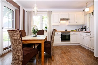 Neues, liebevoll und hochwertig eingerichtetes Reetdachhaus im Landhausstil am schönen naturbelassenen Stettiner Haff in Südosten der Insel Usedom. Als Gast werden Sie die Ruhe am Wald, das Ausspannen auf der großzügigen Terrasse mit einem schön angelegten Garten genauso schätzen wie die Gemütlichkeit und dem Komfort des Ferienhauses. Durch die vielen Annehmlichkeiten des Hauses wie z.B. Sauna, Kaminofen, Boxspringbetten und elektrischen Außenjalousien ist das Wohlfühlen in Ihrem Urlaub vorprogrammiert.