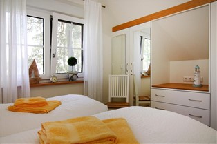 In der 1. Etage: (Schlafzimmer (Doppelbett), Schlafzimmer (Doppelbett), Badezimmer (Dusche, Waschbecken, Toilette, Föhn), Abstellraum)