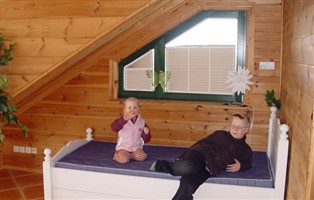 Ferienhaus, 153 m² Wohnfläche, 2 Schlafzimmer, 1 Badezimmer, für 7 Personen. Etage: Erdg. und 1. Stock, Baumaterial: Baumaterial: Holz, Isolierung: Winterfest, Heizung: Elektro-Heizung, Grundstück: Naturgrundstück 1974 m²