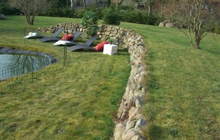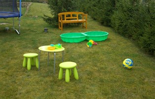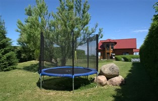 Aussenausstattung: Eingezäuntes Grundstück, Gartenmöbel, Parkplatz a.d. Grund/kostenlos 3 Plätze, Grill, See, Trampolin, Aussenkamin