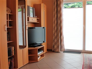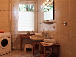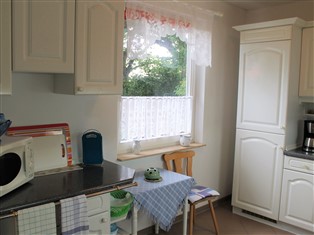 Ferienhaus (Ländlich, In einem Wohngebiet oder im Zentrum (Dorf)) , 80 m² Wohnfläche, 2 Schlafzimmer, 1 Badezimmer, für 4 Personen. Parterre: (Küche (Wasserkocher, Toaster, Kochherd (Ceranfeld), Kaffeemaschine, Backofen, Mikrowelle, Spülmaschine, Kühlschrank, Tiefkühlschrank), Wohn-/Schlafzimmer (Doppelschlafcouch, TV, Esstisch, Radio), Schlafzimmer (Doppelbett), Schlafzimmer (2x Einzelbett), Badezimmer (Dusche, Waschbecken, Toilette, Waschmaschine), Heizung, Kinderbett, Hochstuhl)