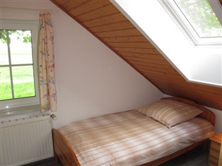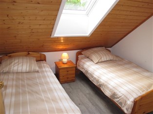 5-Zimmer-Doppelhaushälfte 85 m² auf 2 Stockwerken, im Erdgeschoss. Gemütlich eingerichtet: Wohn-/Esszimmer mit Sat-TV (Flachbildschirm), DVD. Ausgang zur Terrasse. 1 Zimmer mit 1 Doppelbett (2 x 90 cm, Länge 200 cm). Kochnische (4 Glaskeramikherd Platten, Toaster, Wasserkocher, Tiefkühler, elektrische Kaffeemaschine, Kombinationsmikrowelle). Dusche/WC, Doppelwaschbecken. Obergeschoss: 2 abgeschrägte Zimmer, jedes Zimmer mit 2 Betten (90 cm, Länge 200 cm). 1 abgeschrägtes Zimmer, ohne Fenster mit 1 Bett (90 cm, Länge 200 cm). Dusche/WC. Terrasse. Terrassenmöbel, Liegestühle (2). Zur Verfügung: Waschmaschine. Internet (Wireless LAN, gratis). Bitte beachten: Nichtraucher-Unterkunft. Maximal 1 Haustier/Hund erlaubt. Rauchmelder.