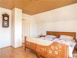 Doppelhaushälfte (Ländlich) , 135 m² Wohnfläche, 2 Schlafzimmer, 1 Badezimmer, für 6 Personen. Parterre: (Eingang, Diele, Wohnzimmer (Schlafcouch 1 Pers., TV (Flatscreen, Satellit), Radio), Esszimmer (Esstisch), Wohnküche (Esstisch, Wasserkocher, Toaster, Kochherd (4 Kochplatten, Ceranfeld, elektrisch), Kaffeemaschine (Espresso, Filter), Backofen, Waffeleisen, Mikrowelle, Spülmaschine, Kühlschrank (+ Gefrierfach)), Badezimmer (Dusche, Waschbecken, Toilette))