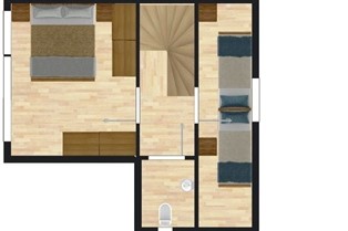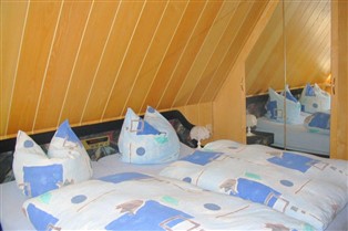 In der 1. Etage: (Schlafzimmer (Doppelbett), Schlafzimmer (2x Einzelbett), Toilette (Waschbecken))