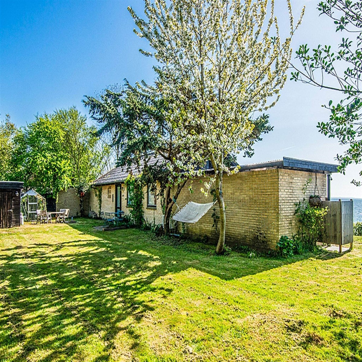 Ferienhaus mit fantastischem Meerblick zur Küste bei Rude Strand, nur 20-25 Autominuten südlich der Stadt Aarhus. Das Haus ist hell eingerichtet und hat einen großen, offenen Küchen-/Wohnbereich für das Familienleben. In den beiden Schlafzimmern stehen ein Doppelbett bzw. zwei Einzelbetten bereit. Außen gemütlicher und abgeschiedener, großer Garten mit Platz zum Spielen und mit einer offenen und einer überdachten Terrassenfläche für warme Tage und Grillabende. Privater Stellplatz am Haus mit Platz für mehrere Autos. Vom Garten aus hat man Zugang zu einem guten Badestrand und blauer Flagge. Keine Vermietung an Jugendgruppen erwünscht!