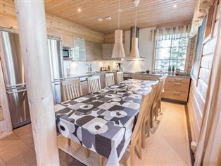 40 km nordöstlich von Kolari, See Ylläsjärvi 3 km, Badestrand 4.5 km. Block-Ferienhaus, Baujahr 2005. Erdgeschoss: zwei Schlafzimmer (eins mit Doppelbett und eins mit zwei separaten Betten, die auch zusammengestellt werden können) mit jeweils separatem Ankleidezimmer. Grosse Wohnküche. Geräumige und hohe Lounge, Hauswirtschaftsraum, zwei Toiletten. Saunabereich: Ankleideraum, Badezimmer mit Dampfbad (Saunaofen - immer bereit). Zwei Aussenveranden. Kamin. Obergeschoss: geräumige Lounge mit Schlafsofa für zwei und zwei Zusatzbetten, zwei Schlafzimmer mit je zwei separaten Betten (die zusammengestellt werden können), im Obergeschoss befinden sich eigene Balkone, WC- und Duschräume, sowie Ankleidezimmer. Alle Schlafzimmer verfügen über einen eigenen Fernseher. Die Villa verfügt ausserdem über sep. Auto-Unterstand, beheizten Abstellraum mit Ski-Wachsausrüstung und Grillhütte (30 m2). Zusätzlich: Canal-Digital Satelliten-TV-Paket, Heimkinosystem, Videoprojektor, Leinwand, Internetverbindung + WLAN, Kinderbett und Hochstuhl, Whirlpool, Wäschetrockner. Sehr hochwertiges Ferienhaus im Dorf Ylläsjärvi, in der Gegend Iso-Ylläs. Lage ist ideal für Winter- und Sommersport. Keine Haustiere erlaubt. Wöchentliche Preise beinhalten auch Bettwäsche, für kürzere Aufenthalte kann dies gemietet werden. Das Ferienhaus bietet eine tolle Urlaubsumgebung für geschäftliche und private Zwecke. Die Buchungen beginnen um 16:00 Uhr und enden um 12:00 Uhr (auch bei Wochenendbuchungen).