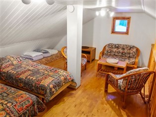205 km nordwestlich von Rovaniemi, 21 km südöstlich vom Gemeindezentrum Muonio, See Äkäsjärvi 30 m (Länge 15 km, Breite 2 km), flacher Strand, harter Kiesboden, Pier, Ruderboot. Der Strand und das Ruderboot werden mit zwei anderen Häusern geteilt. Ferienwohnung in einer Block-Doppelhaushälfte, Baujahr 1996, dreitstöckig. Im mittleren Stock: Wohnküche, Schlafzimmer mit Doppelbett (Breite 140 cm), verglaste Terrasse und WC. Im Erdgeschoss: Sauna, Waschraum, WC und Wohnbereich. Nische mit 2 Betten befindet sich neben dem Wohnbereich. Es gibt auch Kühlschrank mit Gefrierfach. Der Kamin im Raum wird nicht benutzt. Dachboden mit 2 Boxspringbetten und 2 Matratzen. Steile Treppen führen zum Dachboden. Das Ziel liegt am grossen See im Lappland. Es gibt eine Hütte und einen Schutzunterstand am Strand (beide haben einen eigenen Lagerfeuerplatz). Diese Einrichtungen werden mit zwei anderen Häusern in der Gegend geteilt. Mehrere Fjells und Skigebiete sind sehr gut erreichbar. Es gibt viele Arten von Freizeitaktivitäten in der Umgebung. Ski- und Schneemobilwege sind in unmittelbarer Nähe. Gute Angel- und Jagdmöglichkeiten. Das Gebiet des Ylläs-Pallastunturi-Nationalparks beginnt auf der anderen Seite des Sees. Olostunturi 16 km, Pallas 23 km, Levi 37 km, Ylläs 37 km. Kunstgalerie Raekallio 20 km, Naturzentrum Kellokas 37 km. Nachbarwohnung: 8575.