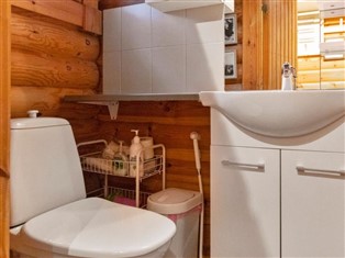 53 km from Kemijärvi, round log cabin built in 1990. Renovated in 2009, living room/kitchen, bedroom double bed, roomy balcony double bed, 2 beds, toilet, dressing room, washroom, sauna (electric stove), open porch.