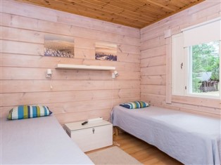Living room, big kitchen, 4 bedrooms with two separate beds (80*200cm) in each. One bedroom has its own toilet. There is another toilet in the entry. Utility room, bathroom with two showers, sauna with electric and wooden stove, big terrace with outdoor furniture. There are also two extra beds in the cabin.