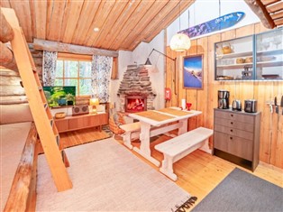 50 km north from Kemijärvi. Silver log row house apartment built in 1989. Kitchen/living room with bunk bed for four persons, toilet, washroom, sauna (electric stove) and upstairs shallow loft with two mattresses (80*200cm).
