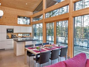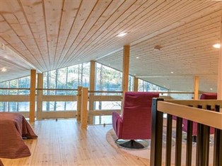 57 km westlich von Jyväskylä, See Ruokosjärvi 25 m (Länge 3 km, Breite 1.5 km), harter und flach abfallender Sandstrand, Anlegestelle und Boot. Holzvilla, Baujahr 2004, im Erdgeschoss geräumige Wohnküche, Diele, Schlafzimmer mit 1 Doppelbett, Schlafzimmer mit 1 Doppelbett (Breite 120 cm), Schlafzimmer mit 1 Bett, vom Wohnzimmer durch Falttüren getrennt, 90 m² Terrassen auf drei Seiten des Hauses, Hauswirtschafts-/Ankleideraum, Badezimmer (2 Duschen) und elektrische Sauna. Im Obergeschoss Wohnzimmer mit 4 Betten. Das Ende der Villa auf der Seeseite besteht aus Glas und bietet einen herrlichen Blick auf den See und die Natur. Die Villa verfügt über eine Fussbodenheizung mit Erdwärme, sowie eine automatische Lüftungsanlage mit Wärmerückgewinnung. Es gibt auch einen Wäschetrockner in der Villa. Seesauna (24 m2) mit Kaminzimmer und Schlafsofa für zwei Personen. Das Zimmer hat auch Mini-Küche und Fernseher. Das Wasser für die Sauna kommt aus dem See, im Saunagebäude gibt es Fussbodenheizung. Von der Saunaterrasse führt eine Treppe zur Strand-Anlegestelle. Mustikkakallio befindet sich in einem ruhigen Grundstück, wo Sie völlig die Privatsphäre geniessen können. Die Villa befindet sich auf einer Klippe und die Umgebung wurde in einem natürlichen Zustand gehalten. Von der Sauna am See führt eine Treppe zum Strand. Der nach Westen ausgerichtete Strand ist sandig, fällt zuerst leicht ab und wird dann schnell tiefer. Die Baumaterialien der Villa sind organisch. Die umgehende Natur war die Inspiration für die Farbgestaltung der Innenräume. Das Wohnzimmer hat Landschaftsfenster, die sich nach Westen zum See öffnen. Die Villa befindet sich in ländlicher Umgebung, im tradionellem Ruokonen Ackerland. Auf dem Ackerland befindet sich ein historisches Gerichtsgebäude aus dem frühen 19. Jahrhundert. Die benachbarten Ferienhäuser (nur während der Sommersaison vermietet: 295 und 481), sowie der Bauerhof sind 200-400 m entfernt. Auf der Terrasse gibt es Aussenkamin und Gasgrill. Im Hof befindet sich Lagergebäude mit Abstellraum für Brennholz und Bio-WC. Keuruu Dienstleistungen 8 km, Haapamäki Höyryveturipuisto 22 km, Ähtäri Zoo und Golf 68 km, Himos 75 km, Riihivuori 70 km.
