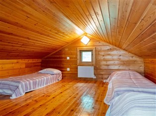 120 km nördlich von Kajaani. See Pesiönjärvi 35 m (Länge 8 km, Breite 5 km), flaches Wasser, fester Lehmboden. Eigenes Boot. Blockhaus, Baujahr 1991, Wohnküche, Schlafzimmer mit 2 Betten, Schlafboden (15 m² mit niedriger Raumhöhe) mit 2 Matratzen (steile Treppe), Waschraum, Sauna (elektrischer Saunaofen), offene Veranda. Rauchsauna nach Vereinbarung. Fischbestände im Pesiönjärvi-See: Barsch, Plötze und Hecht. Joutenjärvi Vogelbeobachtungsturm 3 km, Kaunisniemi Sommertheater (Theater Retikka) 27 km, "Silent People"-Kunstwerk und Sommercafé Niittykahvila 35 km, Raate Winter Kriegsmuseum 43 km, Hepoköngäs Wasserfall und Naturschutzgebiet 52 km, Kylmäluoma Wandergebiet 100 km, Hossa Naturpark und Besucherzentrum 105 km, Kuusamo grosses Fleischfresserzentrum 112 km.