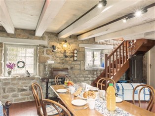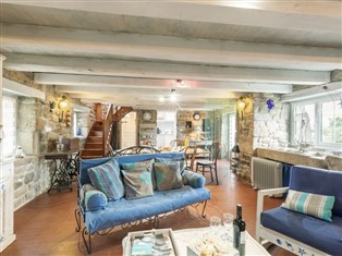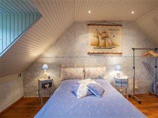 "Kermalo", 4-Zimmer-Haus 80 m² auf 2 Stockwerken. Zweckmässig und gemütlich eingerichtet: Wohn-/Esszimmer mit offenem Kamin (nur Deko), Esstisch, TV und Radio. Ausgang zum Garten. Kleine, offene Küche (Backofen, Geschirrspüler, 4 Induktionskochplatten, Toaster, Wasserkocher, Mikrowelle, elektrische Kaffeemaschine). Dusche/WC. E-Heizung. Obergeschoss: 2 abgeschrägte Zimmer, jedes Zimmer mit 1 franz. Bett (140 cm, Länge 190 cm). 1 abgeschrägtes Zimmer mit 1 Bett (90 cm, Länge 190 cm). Holzdielenboden. Gartensitzplatz. Gartengrill, Liegestühle (2). Zur Verfügung: Waschmaschine. Bitte beachten: Nichtraucher-Haus. Rauchmelder.