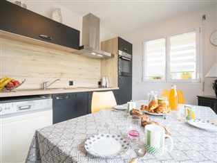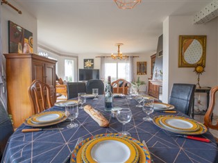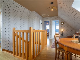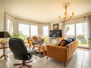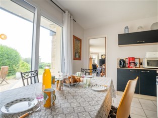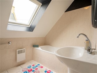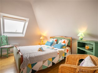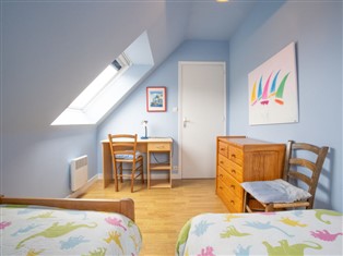 "Ty Nevez", 6-Zimmer-Haus 120 m² auf 2 Stockwerken. Hell, zweckmässig eingerichtet: Wohn-/Esszimmer, auf 2 Ebenen mit Schwedenofen, Esstisch, Sat-TV und Internationale TV-Sender. Ausgang zur Terrasse. 1 Zimmer mit 1 franz. Bett (160 cm, Länge 200 cm). Küche (Backofen, Geschirrspüler, 4 Glaskeramikherd Platten, Wasserkocher, Mikrowelle, elektrische Kaffeemaschine) mit kleinem Esstisch. Ausgang zum Garten. Bad/Dusche, sep. WC. Obergeschoss: 2 abgeschrägte Zimmer, jedes Zimmer mit 1 franz. Bett (140 cm, Länge 190 cm). 1 abgeschrägtes Zimmer mit 2 Betten (90 cm, Länge 190 cm). 1 abgeschrägtes Zimmer mit 1 Bett (90 cm, Länge 190 cm). Bad, sep. WC. E-Heizung. Terrasse. Terrassenmöbel, Gartengrill, Liegestühle (2), Abstellkammer. Sicht auf das Meer. Zur Verfügung: Waschmaschine, Wäschetrockner, Kinderhochstuhl, Babybett bis 2 Jahre. Internet (Wireless LAN, gratis). Bitte beachten: Nichtraucher-Haus. Rauchmelder. Flexibilität bei der Bettenaufteilung: Es stehen mehr Schlafmöglichkeiten zur Verfügung als die maximal zugelassene Personenzahl, diese darf dennoch nicht überschritten werden.