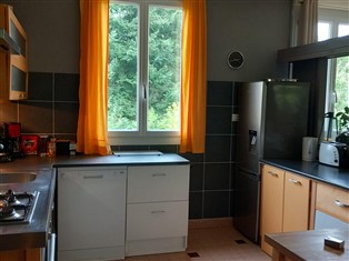 Ferienwohnung (Ländlich) , 120 m² Wohnfläche, 2 Schlafzimmer, 1 Badezimmer, für 6 Personen. Parterre: (Küche (Wasserkocher, Toaster, Kaffeemaschine, Backofen, Mikrowelle, Spülmaschine, Kühl-/Gefrierkombination), Wohn/Esszimmer (Doppelschlafcouch, TV (internationale TV-Kanäle), Esstisch, Herd (Holz), Sitzecke), Schlafzimmer (Einzelbett, Einzelbett), Schlafzimmer (Doppelbett oder 2 Einzelbetten (90 x 200 cm)), Badezimmer (Badewanne, Dusche), Toilette, Waschraum (Waschmaschine))