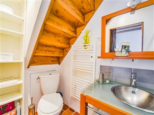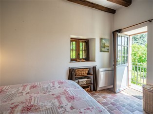 "Le Pigeonnier", 2-Zimmer-Haus 35 m² auf 2 Stockwerken. Objekt geeignet für 2 Erwachsene + 1 Kind. Schön und gemütlich eingerichtet: 1 Zimmer mit 1 franz. Bett (140 cm, Länge 190 cm), Dusche/WC. Ausgang zum Garten. Obergeschoss: (steile Treppe) Wohnzimmer mit 1 Diwanbett (80 cm, Länge 200 cm), Essecke, Sat-TV und Radio. Ausgang zur Terrasse. Kochnische (Backofen, Geschirrspüler, 2 Glaskeramikherd Platten, Mikrowelle, Tiefkühler, elektrische Kaffeemaschine). E-Heizung. Terrasse überdacht. Terrassenmöbel, Gartengrill (mobil). Schöne Sicht auf die Landschaft. Zur Verfügung: Kinderhochstuhl, Babybett. Internet (Wireless LAN, gratis). Bitte beachten: Rauchmelder.