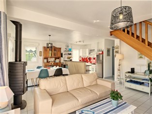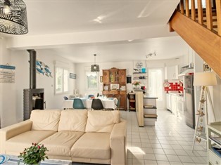 Einfamilienhaus "Melflo". 1.5 km vom Zentrum von Piriac-sur-Mer, in einem Wohnquartier, 500 m vom Meer, in einer Sackgasse. Zur Alleinbenutzung: Grundstück 500 m2, Parkplatz auf dem Grundstück. Lebensmittelgeschäft 1.5 km, Restaurant 1.5 km, Sandstrand 500 m, Hallenbad 3 km. Sporthafen 1.5 km.