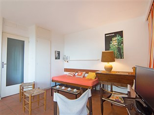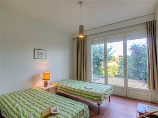 3-Zimmer-Wohnung 77 m², im Erdgeschoss, Südostlage. Zweckmässig und komfortabel eingerichtet: Wohnzimmer mit Panoramafenster Richtung Südosten mit 1 Bett (80 cm, Länge 190 cm), TV (Flachbildschirm), Klimaanlage. Ausgang zur Terrasse. 1 Zimmer, Richtung Osten mit 1 franz. Bett und Klimaanlage. 1 Zimmer, Richtung Osten mit 2 Betten (90 cm, Länge 190 cm), Klimaanlage. Küche (Mini-Backofen, Geschirrspüler, Toaster, Wasserkocher, elektrische Kaffeemaschine) mit G-Heizofen. Ausgang zur Terrasse. Dusche, sep. WC. Grosse Terrasse. Terrassenmöbel, Liegestühle (4). Sicht auf den Garten. Zur Verfügung: Waschmaschine, Bügeleisen. Internet (Wireless LAN, extra). Bitte beachten: 1 kleines Haustier/Hund erlaubt. Rauchmelder.