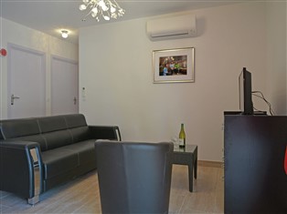 Ferienwohnung / Villa (In einem Wohngebiet oder im Zentrum (Dorf)) , 75 m² Wohnfläche, 3 Schlafzimmer, 1 Badezimmer, für 6 Personen. Parterre: (offene Küche (Kochherd (Gas), Mikrowelle, Spülmaschine, Kühl-/Gefrierkombination), Wohn/Esszimmer (TV, Esstisch (6 Personen)), Schlafzimmer (Doppelbett (160 x 200 cm)), Schlafzimmer (Doppelbett (140 x 190 cm)), Schlafzimmer (2x Einzelbett (90 x 190 cm)), Badezimmer (Dusche, 2x Waschbecken, Toilette, Waschmaschine), Toilette, Klimaanlage)