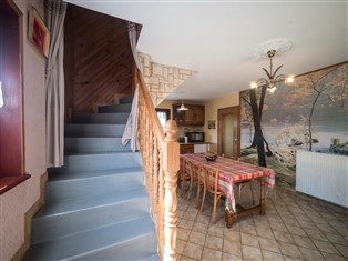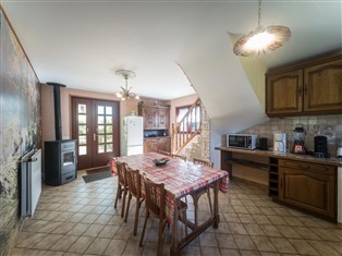 Ferienhaus (Ländlich) , 80 m² Wohnfläche, 3 Schlafzimmer, 1 Badezimmer, für 6 Personen. Parterre: (Aufenthaltsraum (TV (Kabel)), Wohnküche (Kochherd (4 Kochplatten, Gas), Kaffeemaschine (pads), Backofen, Mikrowelle, Spülmaschine), Toilette)
