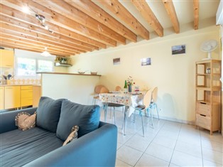 "de Beaumont", 3-Zimmer-Haus 48 m² auf 2 Stockwerken. Zweckmässig eingerichtet: Wohn-/Esszimmer mit Esstisch und Sat-TV. Ausgang zur Terrasse. 1 Zimmer mit 1 franz. Bett (160 cm, Länge 200 cm). Offene Küche (Backofen, Geschirrspüler, 4 Flammen, Toaster, Wasserkocher, Mikrowelle, elektrische Kaffeemaschine). Dusche, sep. WC. Dachgeschoss: 1 abgeschrägtes, offenes Zimmer mit Dachfenster mit 2 Betten. E-Heizung. Terrasse teilweise überdacht. Terrassenmöbel, Gartengrill (mobil). Zur Verfügung: Waschmaschine, Kinderhochstuhl, Babybett. Internet (Wireless LAN, gratis). Bitte beachten: Nichtraucher-Haus. Maximal 2 Haustiere/Hunde erlaubt.