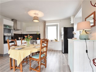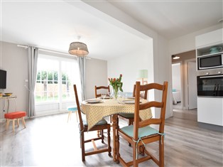 Wir wurden von der Gastgeberin empfangen, bekamen eine Flasche Blasen und Umgebungskarten. (Gutes Englisch) Unterkunft war großartig! Mit etwas Anfangsbestand inklusive auch Geschirrspülertabletten super! Schöner großer Kühlschrank mit Gefrierfach. Schöner Fernseher. Nur dieser hat französische und englische Kanäle. WiFi war gut, konnte sofort unsere Bilder hochladen, konnte aber kein iTV streamen. Der Garten ist eingezäunt, so dass Sie im Wind in der Sonne sitzen können. Die Umgebung ist großartig. Wir konnten jeden Morgen einen anderen Strandabschnitt mit unseren Hunden spazieren. Die Küste ist wunderschön!