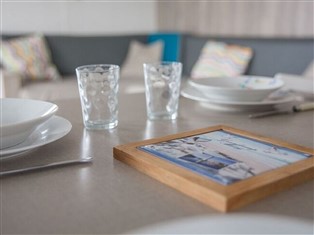Ferienwohnung (Meerblick) , 40 m² Wohnfläche, 2 Schlafzimmer, 1 Badezimmer, für 4 Personen. Parterre: (Wohnzimmer (TV (Flatscreen), Esstisch, Sitzecke), Kochnische (Wasserkocher, Toaster, Kochherd (Gas), Dunstabzugshaube, Kaffeemaschine, Backofen, Mikrowelle, Spülmaschine, Kühl-/Gefrierkombination, Waschmaschine), Schlafzimmer (Einzelbett (90 x 190 cm), Einzelbett (90 x 190 cm)), Schlafzimmer (Doppelbett (140 x 190 cm)), Badezimmer (Dusche (Kabine), Waschbecken, Föhn), Toilette)