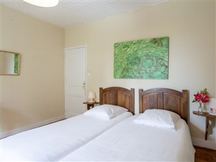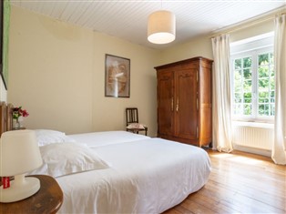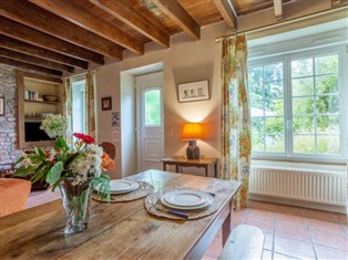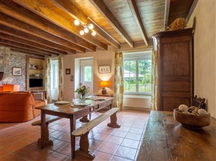 "La Haute Gilberdière", 3-Zimmer-Doppelhaushälfte 90 m² auf 2 Stockwerken. Rustikal und mit viel Holz eingerichtet: Wohn-/Esszimmer mit offenem Kamin (nur Deko), Esstisch, Sat-TV und Radio. Kochnische (Geschirrspüler, 4 Glaskeramikherd Platten, Wasserkocher, Mikrowelle, elektrische Kaffeemaschine). Obergeschoss: 1 Zimmer mit 1 franz. Bett (140 cm, Länge 190 cm). 1 Zimmer mit 2 Betten (90 cm, Länge 190 cm). Bad, sep. WC. Ölheizung. Parkettboden. Garten, Rasen 500 m². Terrassenmöbel. Zur Verfügung: Internet (Wireless LAN, gratis). Bitte beachten: Nichtraucher-Haus. Rauchmelder.