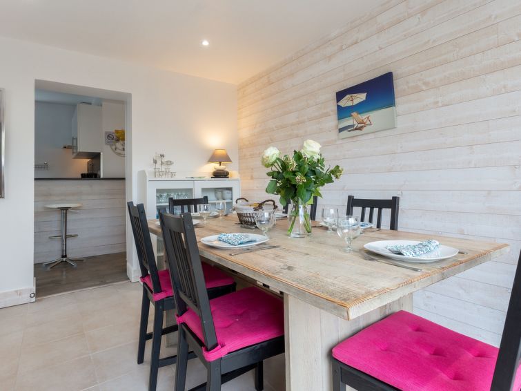 "Coté Marine", 4-Zimmer-Haus 85 m², Südwestlage. Renoviert, komfortabel und schön eingerichtet: Esszimmer. Salon mit TV (Flachbildschirm). 1 Zimmer mit 1 franz. Bett (140 cm, Länge 190 cm). Küche (1 Kochplatte, Backofen, Geschirrspüler, 4 Flammen, Toaster, Wasserkocher, Mikrowelle, elektrische Kaffeemaschine) mit E-Heizung. Sep. WC. Obergeschoss: 1 Zimmer mit 1 franz. Bett (1 x 160 cm, Länge 200 cm). 1 Zimmer mit 2 Betten (80 cm, Länge 190 cm). Salon. Dusche, sep. WC. Terrassenmöbel, Gartengrill. Zur Verfügung: Bügeleisen, Haartrockner. Internet (Wireless LAN, gratis). Bitte beachten: Rauchmelder. Inserat einer Privatperson nach Artikel 155, IV, CGI.