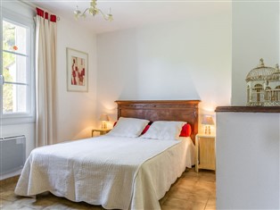 "Domaine de Majobert", 4-Zimmer-Wohnung 83 m² im 1. Stock. Wohnzimmer mit Sat-TV, DVD und Klimaanlage. 1 Zimmer mit 1 franz. Bett (140 cm, Länge 190 cm), Klimaanlage. 1 Zimmer mit 2 Betten (90 cm, Länge 190 cm), Klimaanlage. 1 Zimmer mit 1 Bett (90 cm, Länge 190 cm). Wohnküche (Backofen, Geschirrspüler, 3 Glaskeramikherd Platten, Toaster, Wasserkocher, Mikrowelle, Tiefkühler, elektrische Kaffeemaschine) mit Esstisch. Ausgang zum Balkon. Dusche, sep. WC, Doppelwaschbecken. E-Heizung. Balkon 11 m². Balkonmöbel, Liegestühle. Zur Verfügung: Waschmaschine. Internet (Wireless LAN, gratis). Bitte beachten: Nichtraucher-Unterkunft. Eigener Eingang, Rauchmelder.