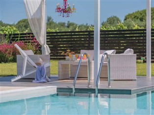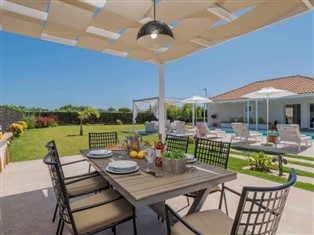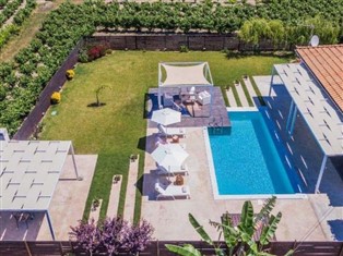 "Madini Luxury Villa", 3-Zimmer-Villa 90 m². Geräumig und hell, vollständig renoviert im Jahre 2017, sehr schön und geschmackvoll eingerichtet: grosses Wohn-/Esszimmer mit Esstisch und Sat-TV (Flachbildschirm), Klimaanlage. Ausgang zum Garten, zur Terrasse, zum Schwimmbad. 1 Doppelzimmer mit 2 Betten, Kabel-TV und Klimaanlage. 1 Doppelzimmer mit 1 Doppelbett, Kabel-TV und Klimaanlage. Grosse, offene Küche (Backofen, Geschirrspüler, 4 Glaskeramikherd Platten, Toaster, Wasserkocher, Mikrowelle, elektrische Kaffeemaschine). Ausgang zum Garten, zur Terrasse, zum Schwimmbad. Dusche/WC. Grosse Terrasse, grosser Garten, Rasen. Terrassenmöbel, Gartengrill, Liegestühle (4), Sitzplatz. Schöne Sicht auf das Schwimmbad und den Garten. Zur Verfügung: Waschmaschine, Bügeleisen, Haartrockner. Internet (Wireless LAN, gratis). Bitte beachten: Nichtraucher-Haus. Rauchmelder, Feuerlöscher. 0428K91000461101