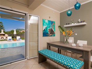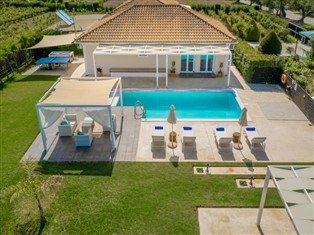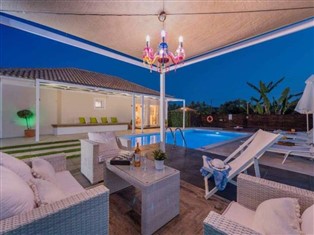 Vanato 6 km von Zakynthos Town: Sehr moderne, schöne, alleinstehende Villa "Madini Luxury Villa", Baujahr 2000, renoviert im Jahre 2017. Am Ortsrand, 400 m vom Zentrum von Vanato, ruhige, sonnige Lage, verkehrsberuhigte Zone, 3 km vom Meer, 5 km vom Strand. Zur Alleinbenutzung: grosser, schöner, gepflegter Garten mit Rasen und Bäumen, Liegewiese, Schwimmbad eckig, nicht einsehbar (4 x 8 m, 150 cm tief, saisonale Verfügbarkeit: 01.Apr. - 31.Okt.). Aussendusche, Terrasse, Gartenmöbel, Grill. Wäschewechsel 2 mal wöchentlich. Handtuchwechsel 2 mal wöchentlich. Wohnungsreinigung 2 mal wöchentlich. Parkplatz (für 2 Autos) beim Haus. Lebensmittelgeschäft, Supermarkt 500 m, Restaurant 450 m, Sandstrand "Vouka Beach" 5 km. Minigolf 5 km. Nahe gelegene Sehenswürdigkeiten: Tsilivi Waterpark 4.4 km, Navagio Beach 30 km, Fantasy Minigolf 5 km. Bitte beachten: Fahrzeug empfohlen. Geeignet für Familien, Babyausstattung auf Anfrage (inkl.). Jugendgruppen nur auf Anfrage.