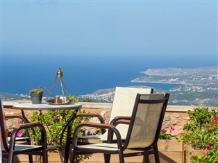 "Matzourana Blue Villa", 2-Zimmer-Haus 50 m² auf 2 Stockwerken. Komfortabel und rustikal eingerichtet: offenes Wohn-/Esszimmer mit 1 Diwanbett, Esstisch, Sat-TV und CD. Ausgang zur Veranda. Offene Küche (Backofen, Geschirrspüler, Mikrowelle, elektrische Kaffeemaschine). Obergeschoss: 1 offenes Zimmer mit 1 Doppelbett. Ausgang zum Balkon. Bad/WC oder Dusche/WC. Klimaanlage. Komfortable Einrichtung im Landhausstil. Terrassenmöbel, Gartengrill, Sitzplatz. Herrliche Panoramasicht auf das Meer und die Berge. Zur Verfügung: Waschmaschine, Telefon, Safe, Bügeleisen, Haartrockner. Internet (Wireless LAN). Bitte beachten: geeignet für Familien. Nichtraucher-Haus. Kein Fahrstuhl. 1042K10000014100